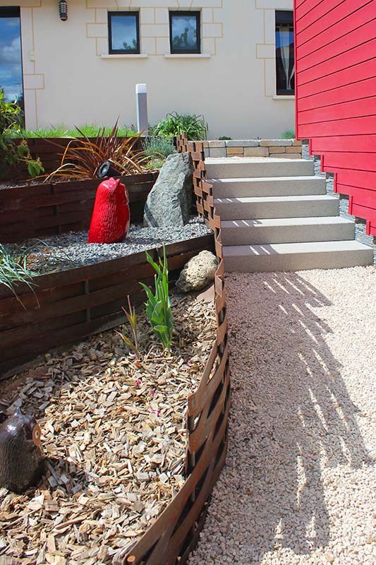 Dans ce projet, la gestion des différents niveaux a été un vrai défi ! Homogénéiser les espaces et les relier entre eux tout en facilitant les circulations et l’entretien, tels ont été les objectifs de notre équipe ! Le résultat est esthétique, fluide et contemporain, de quoi profiter à fond de ce nouvel espace où il fait bon être. Les espaces ont été redéfinis grâce aux différents matériaux et l’ensemble habillé de végétaux soigneusement choisis par nos clients.