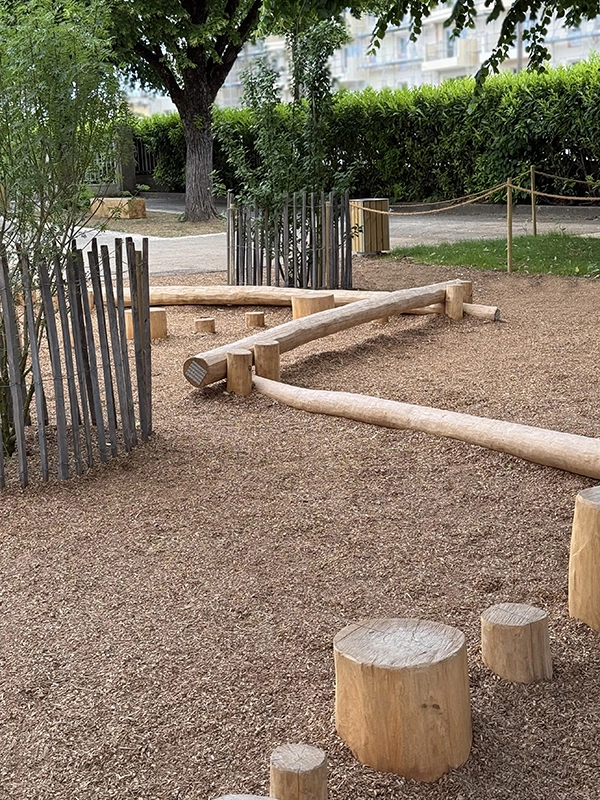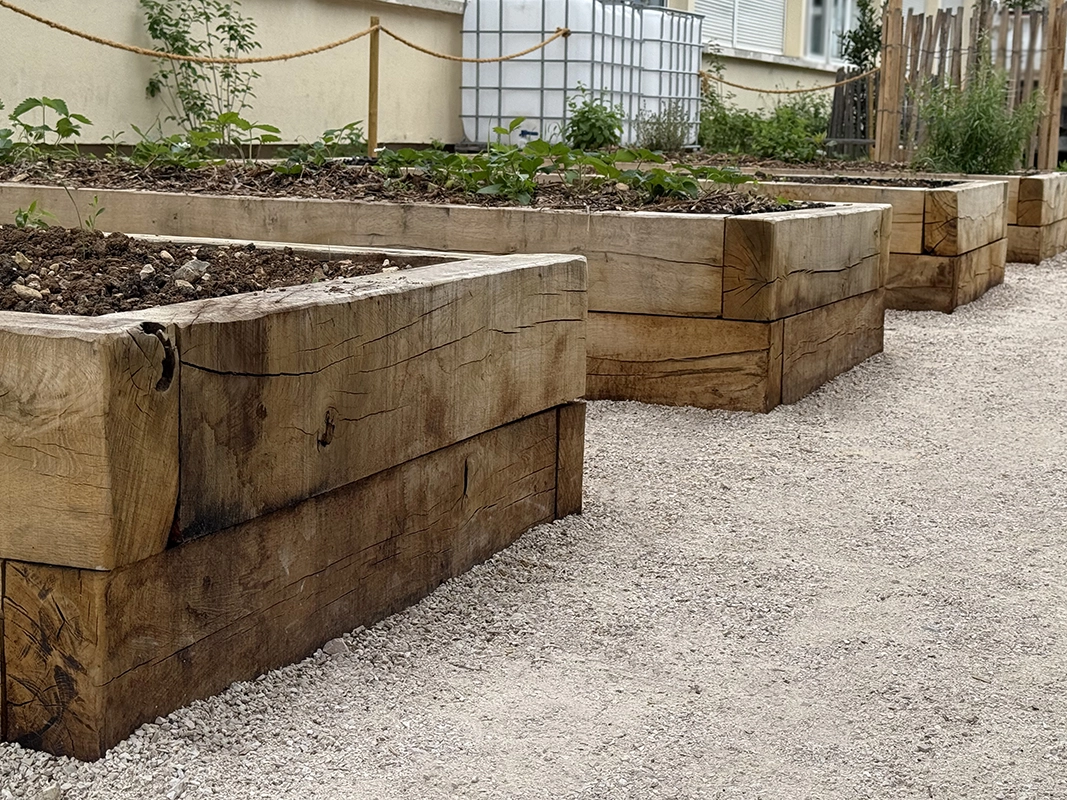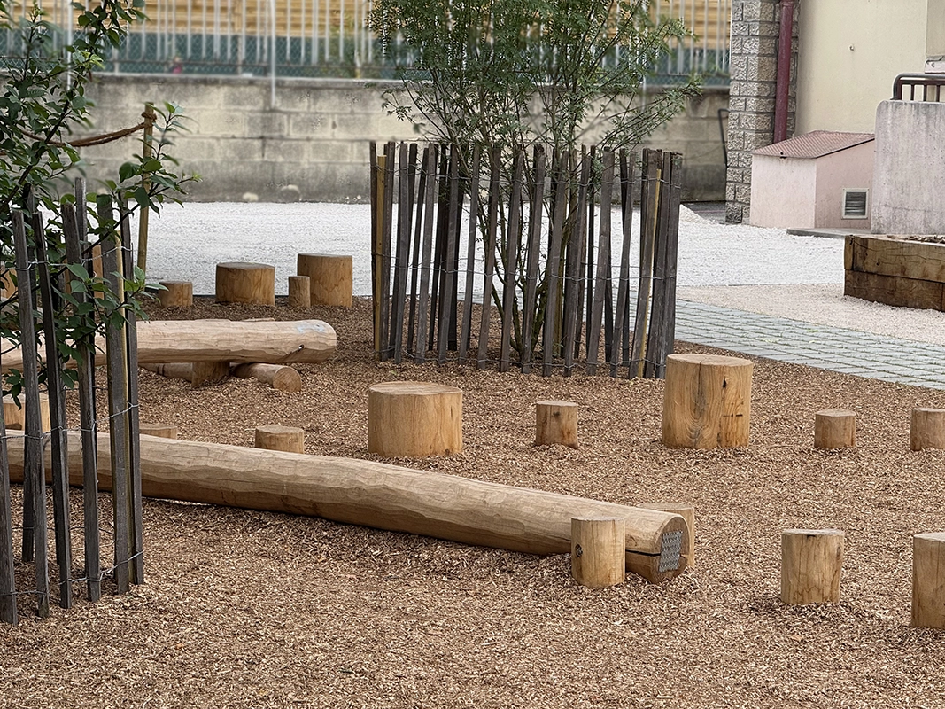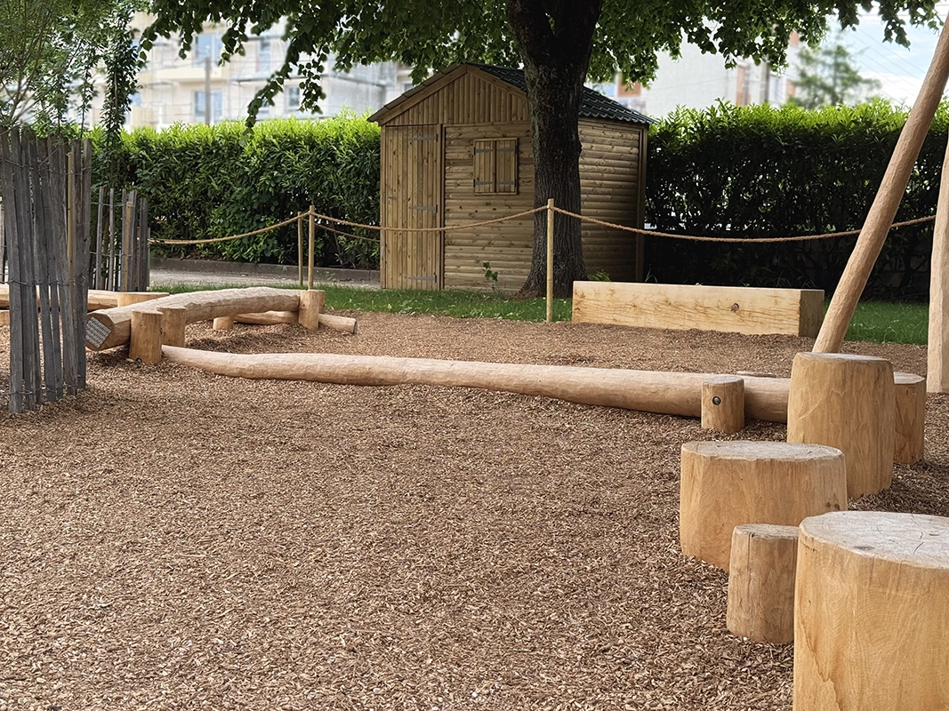 La réalisation d’aires de jeux permet de sociabiliser les enfants et d’apaiser le climat scolaire, tout comme la zone potagère qui permet de les sensibiliser au végétal. L’objectif était de repenser la cour d’école (dans une logique de désimperméabilisation) en un espace plus vert et plus agréable, au service du bien-être et des usages des enfants. L’une des priorités du chantier a été de garantir une livraison complète avant la fin des vacances scolaires, afin d’assurer la sécurité des élèves dès leur retour en classe.